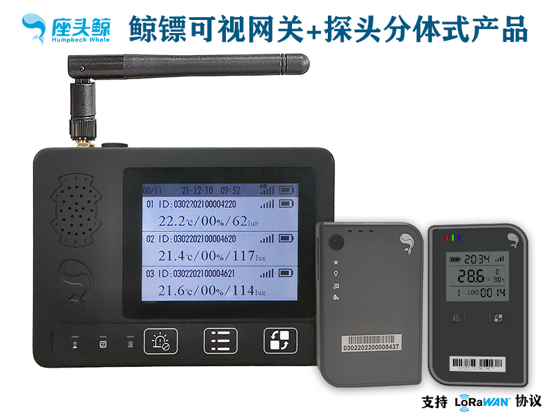鯨鏢網關式產品是一套(網關+探頭)采集環境中溫濕度、光照度、氣體濃度 等數據并通過無線通信技術上傳到云平臺的智能硬件產品。 探頭負責數據采集,網關負責數據收發跟計算;本產品可對需要的場景進行 7x24 小時不間斷采集跟監測,數據采集后能及時上傳到云平臺并進行分析跟相 應處理(具體操作請查看鯨云平臺使用說明)。 此套產品具有體積小、重量輕、待機長、安裝便攜、數據精準、使用安全等 特點,廣泛應用于生鮮食品/醫藥/化工等領域的運輸或儲存場景。 Web 端查看平臺